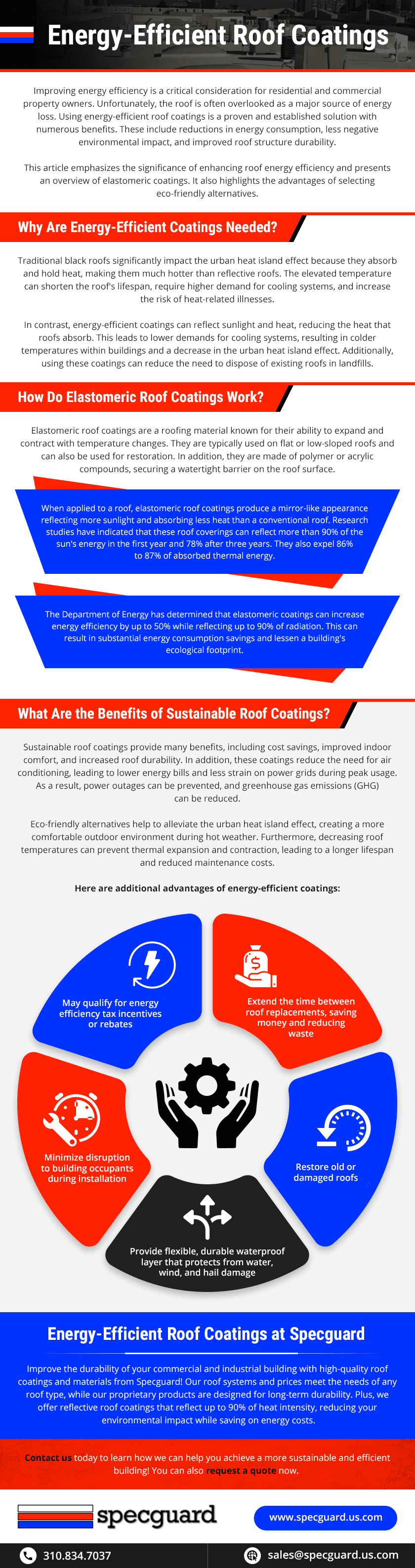 Improving energy efficiency is a critical consideration for residential and commercial property owners. Unfortunately, the roof is often overlooked as a major source of energy loss. Using energy-efficient roof coatings is a proven and established solution with numerous benefits. These include reductions in energy consumption, less negative environmental impact, and improved roof structure durability.